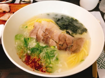 돼지고기 육수로 유명한 곳으로, 제주도의 독특한 가시 아방 스타일을 맛볼 수 있는 집입니다. 고명으로 올라간 수육이 특히 인상적입니다.