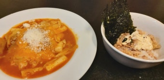 네, 바 테이블과 1~2인용 테이블이 있어 혼밥도 충분히 가능합니다. 직원들이 친절하게 응대해 줍니다. - 점심 메뉴는 어떤 게 있나요?