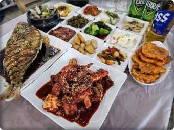 당일 조업 해산물로 만든 해물탕 전문점과 유명 조개구이집은 줄이 길어도 만족도가 높습니다.