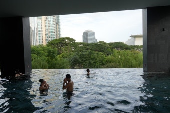 - “주말에는 수영장이 붐빈다”