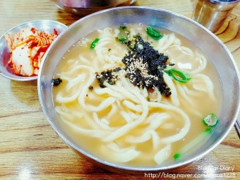 끓는 육수에 담긴 닭과 칼국수의 조합은 밤에 먹으면 더 감동적입니다.