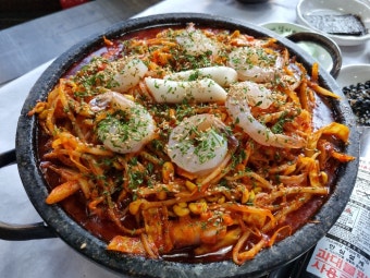 밥 위에 볶은 낙지를 올려 먹으면 포만감도 좋고 가격도 합리적이라 직장인들에게 특히 인기입니다.