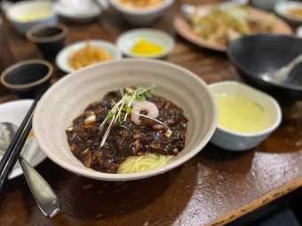 해물과 고기가 들어가 풍미가 더 깊습니다. “고급 짜장면” 느낌.