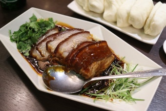 동파육을 바삭한 빵 위에 올려 먹는 독특한 조합을 제공합니다.