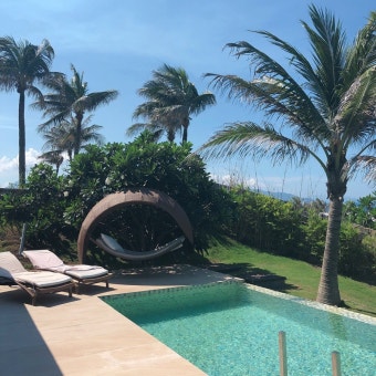 각 빌라에 설치된 전용 수영장은 깊이도 적당하고, 성인 3~4명이 놀기에 충분한 크기입니다. 외부에서 완전히 차단된 구조라 수영복을 입지 않고도 자유롭게 수영할 수 있을 정도로 프라이버시가 철저히 보장됩니다. 수영장 옆에는 데이베드와 해먹, 선베드가 놓여 있어 낮잠을 자기에도 안성맞춤이죠.