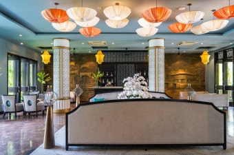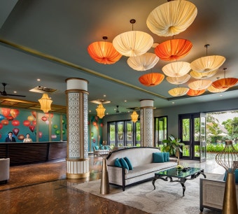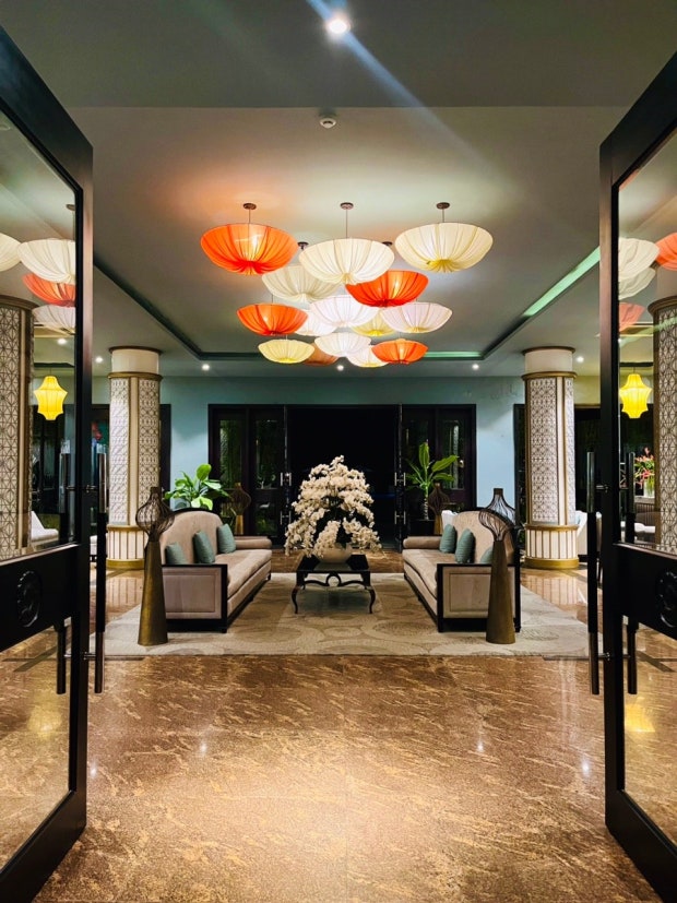 리조트 전반에 걸쳐 보이는 인테리어는 전통과 현대의 조화를 이룬 디자인으로, 여행객에게 깊은 인상을 남깁니다. 특히 리셉션 홀에 들어서자마자 보이는 실크 커튼과 목재 기둥, 황금빛 조명은 ‘고급스러움’ 그 자체.