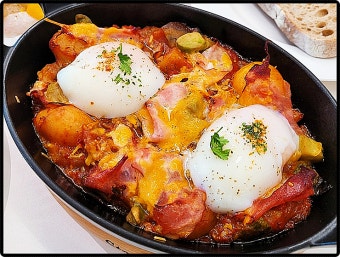 갓 지은 밥 위에 잘게 자른 갈 삼구이를 올리고 반숙 계란 프라이 하나를 얹으면 그 자체로 훌륭한 덮밥이 됩니다. 간단한 한 그릇 요리로도 손색이 없죠.