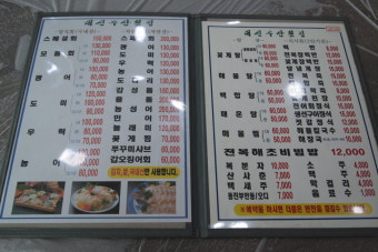 관광지 특성상 메뉴 가격이 다소 다를 수 있는데, 대체로 2인~4인 세트 메뉴를 주문하면 가장 알뜰하게 즐길 수 있습니다. 세트에는 회, 매운탕, 해산물 요리 등이 포함되어 있어 여러 음식을 한 번에 맛볼 수 있고, 인원수에 맞게 푸짐하게 제공됩니다.