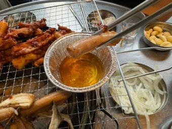 야외 테이블은 공평동 꼼장어의 또 다른 매력 포인트입니다. 밤하늘 아래에서 숯불 위에 올려진 꼼장어가 지글지글 익어가는 소리를 듣고 있으면, 그 자체로 힐링입니다. 특히 여름밤 시원한 바람과 함께라면 소주 한 잔이 그냥 술이 아니라 ‘추억’이 됩니다.