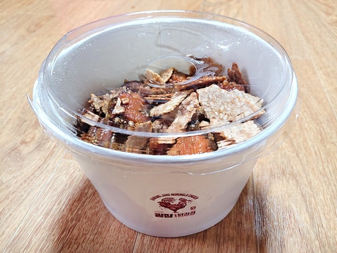 광장 누룽지 닭강정은 포장과 배달 모두 가능하다. 시장 특성상 테이크아웃 수요가 많기 때문에, 포장에 특히 신경 쓴다는 느낌을 받을 수 있다. 실제로 포장을 해보면 누룽지와 닭강정이 따로 눅눅해지지 않도록 잘 분리되어 있는 것을 확인할 수 있다.