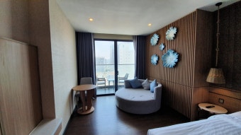 가장 기본적인 객실 타입이지만, 넓고 청결한 공간에 더해 대형 창문을 통해 나트랑 시내 뷰를 감상할 수 있습니다. 커플 여행객이나 1~2인 숙박에 적합하며, 실용성과 경제성을 겸비한 옵션입니다. - 프리미어 룸 (Premier Room)