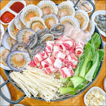 이곳은 삼합 외에도 키조개 샤부샤부가 인기인데, 신선한 키조개와 각종 해산물, 채소를 육수에 넣어 먹는 방식으로, 담백하면서도 진한 국물 맛이 일품입니다. 다 먹고 나면 칼국수 면이나 죽으로 마무리해 든든한 식사를 완성할 수 있어요.