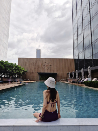 방콕 칼튼 호텔의 자랑 중 하나는 도심 속 오아시스 같은 인피니티 풀입니다. 고층에 위치한 야외 수영장은 탁 트인 시티 뷰와 함께 럭셔리한 분위기를 자아냅니다. 낮에는 태국의 뜨거운 햇살을 즐기며 수영을 할 수 있고, 저녁에는 황혼 속에서 빛나는 방콕의 야경을 감상할 수 있어 인생샷 명소로도 유명합니다.