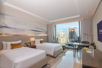 방콕 칼튼 호텔은 총 338개의 객실과 스위트룸을 보유하고 있으며, 각 객실은 현대적인 감각과 기능성을 겸비한 고급스러운 디자인으로 구성되어 있습니다. 스탠다드룸부터 디럭스, 프리미어, 이그제큐티브, 그리고 칼튼 스위트까지 다양한 옵션이 준비되어 있어 여행 목적과 예산에 따라 선택의 폭이 넓습니다.