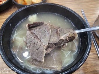 고기는 얇고 퍼석하지 않으며, 부드럽고 육즙이 살아 있어야 합니다. 설렁탕에 따라 양지, 사태, 도가니 등 다양한 부위를 사용하므로 취향에 따라 선택 가능한 것도 맛집의 특징이죠. - 반찬의 구성과 맛