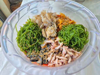 테이크아웃만 전문으로 하는 곳으로, 본인이 원하는 회 구성과 야채, 양념장을 선택해 맞춤형 물회를 만들어 먹을 수 있습니다. 회식이나 캠핑 음식으로도 제격입니다.