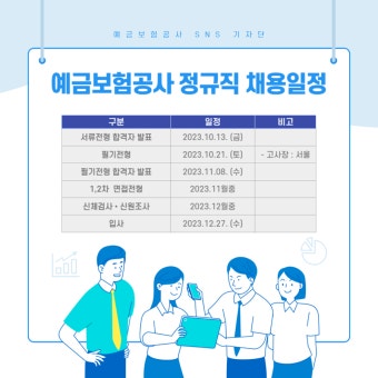 예금 보험 공사의 채용은 보통 연 1~2회 정기 채용, 그리고 수시로 경력직 공고가 나옵니다. 하지만 매년 시기와 형식이 조금씩 바뀔 수 있어, 철저한 일정 관리가 필요합니다.
