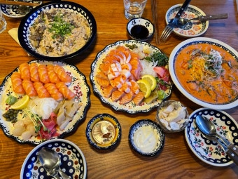 - 물회/회덮밥: 신선한 해산물에 매콤한 양념을 더한 회덮밥은 더위에 지친 입맛을 확 살아나게 합니다.