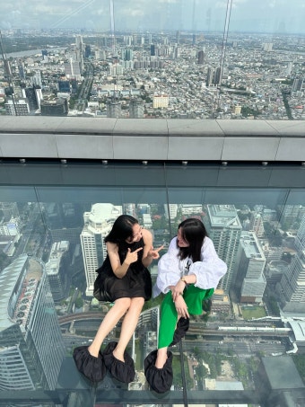 마하나콘의 하이라이트는 바로 **스카이워크(SkyWalk)**입니다. 78층 꼭대기에는 유리 바닥으로 된 전망 공간이 마련되어 있어, 발 아래로 방콕 도심을 그대로 내려다볼 수 있습니다. 투명한 유리 바닥은 일반 전망대와는 차원이 다른 스릴을 제공합니다. 고소공포증이 있는 사람이라면 심장이 쫄깃해지는 경험이 될 수도 있지만, 사진 한 장만으로도 SNS에서 '좋아요' 폭탄을 받을 수 있을 만큼 인생샷 명소입니다.