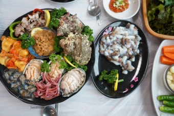 특히 회는 그냥 먹는 것도 좋지만, 몇몇 가게에서는 ‘육회+해산물+회’를 한 접시에 담은 특선 모둠회를 제공하기도 해요. 여기에 멍게, 해삼, 개불 등 보기 힘든 해산물도 함께 나오니 다양한 맛을 한 번에 즐기고 싶다면 모둠회를 꼭 드셔보세요.